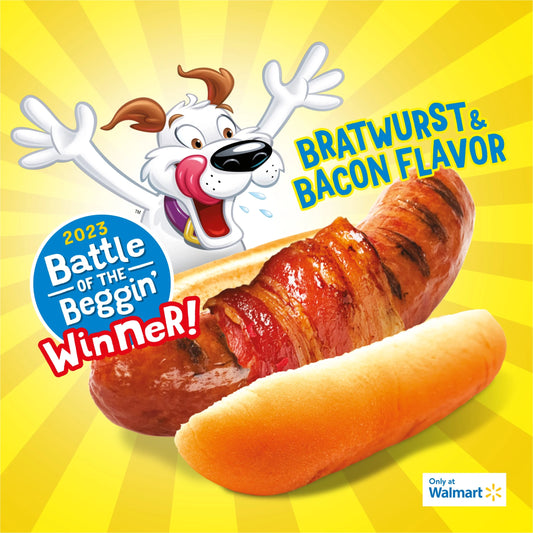 • Purina  Strips Dog Treats with Real Bacon & Bratwurst Flavors Tender Chews, 6 Oz Pouch